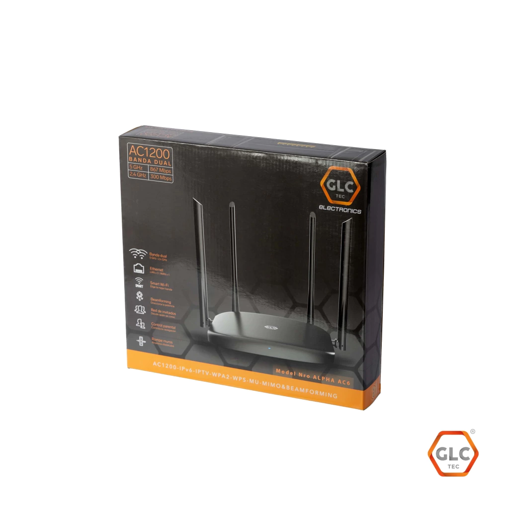 La disponibilidad del Router GLC ALPHA AC6 está sujeta a stock. Las imágenes son propiedad de GLC y son de carácter ilustrativo. Las especificaciones están sujetas a cambios sin previo aviso. Consultá condiciones de envío, devoluciones y garantía en nuestra web.